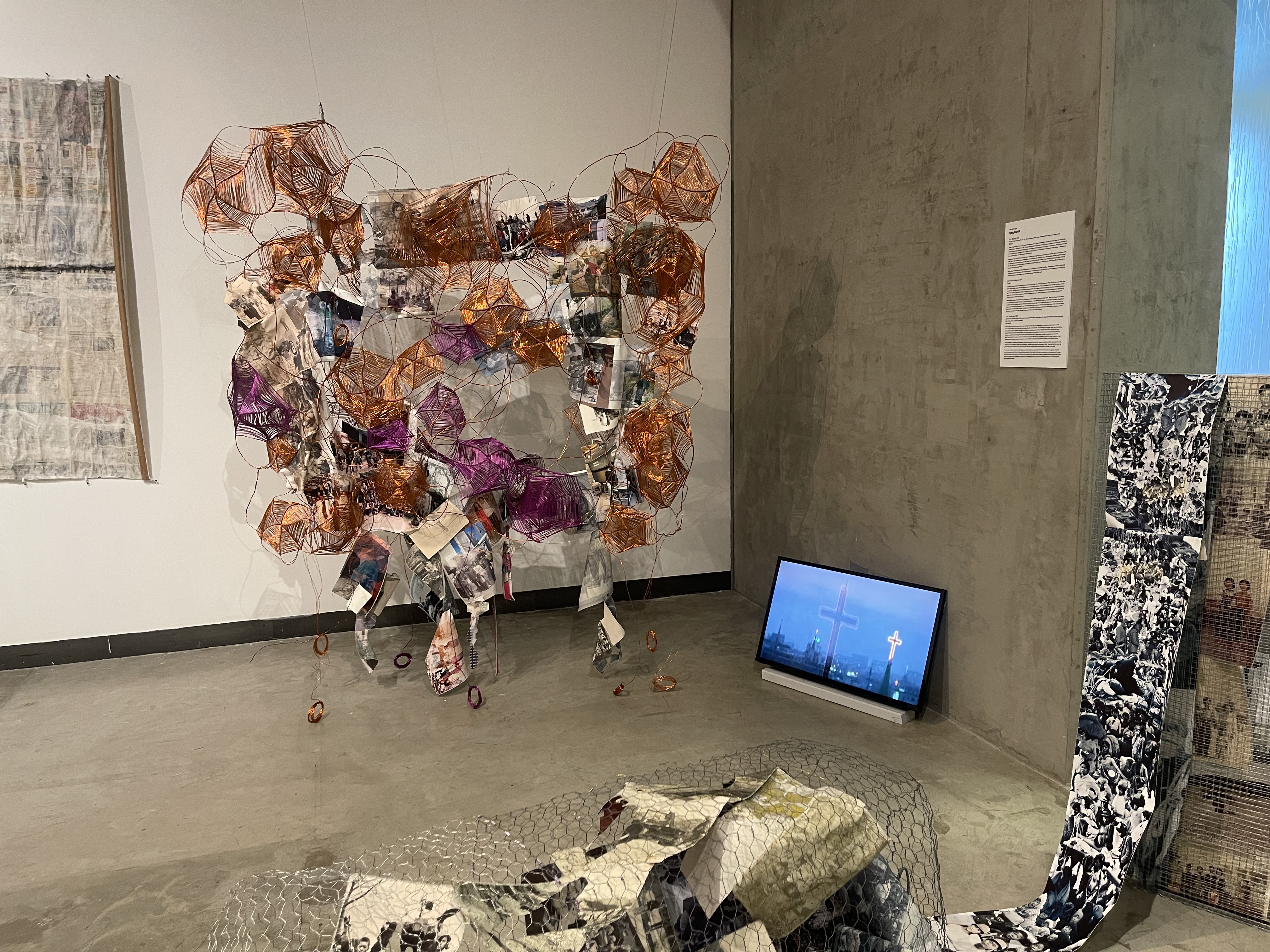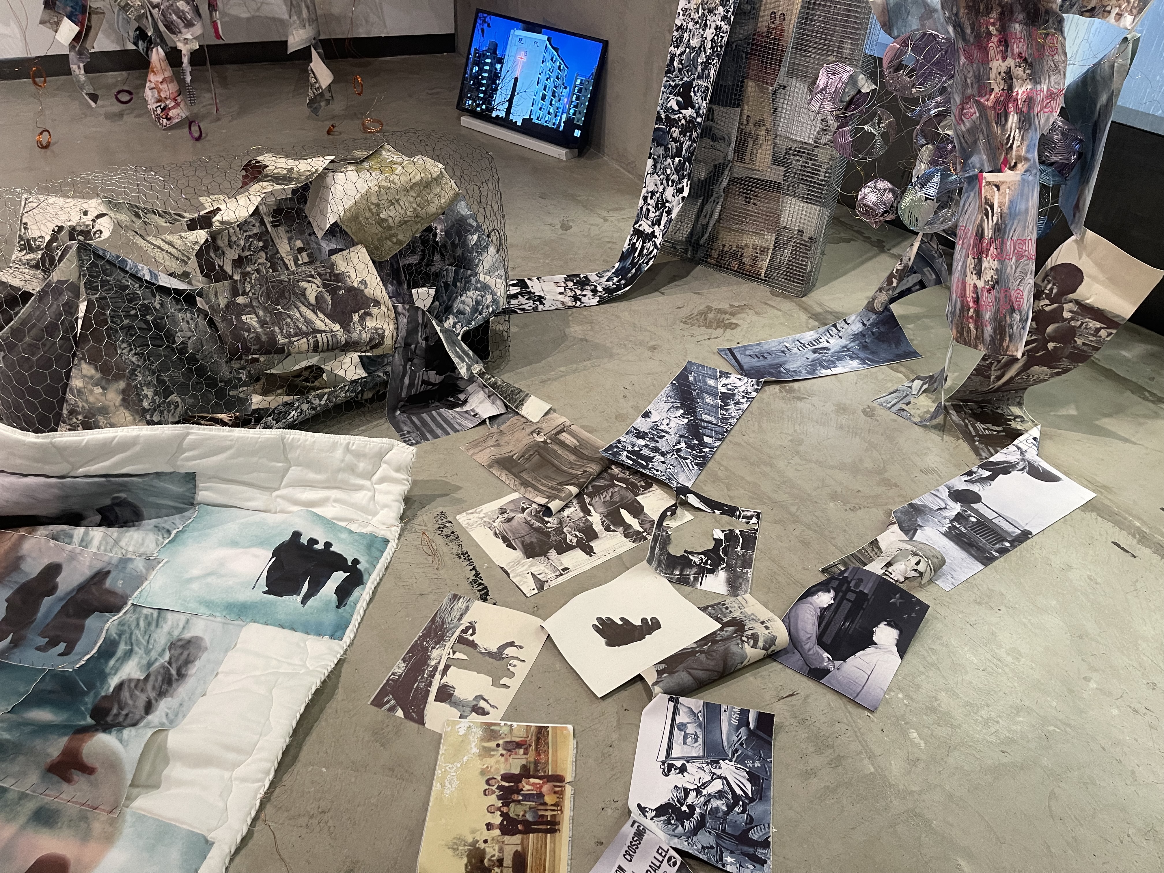 Anchored by the work of Los Angeles-based artists Annette Miae Kim and Kyong Boon Oh, (Be)Longing asked us to consider how diasporic histories and spaces are created and narrated. Can you draw the borders of belonging? How do you make a map of a transnational and borderless community? How much do histories of displacement and war enter the contemporary narrative of a community? What is the relationship of a diasporic community to its indigenous lands and history? Kim and Oh have family in both South Korea and North Korea, and these fraught familial histories brings a personal and poignant dimension to their work. They query and challenge our preconceptions about diasporas and borders through maps, archives, sculpture, and tactile materiality.