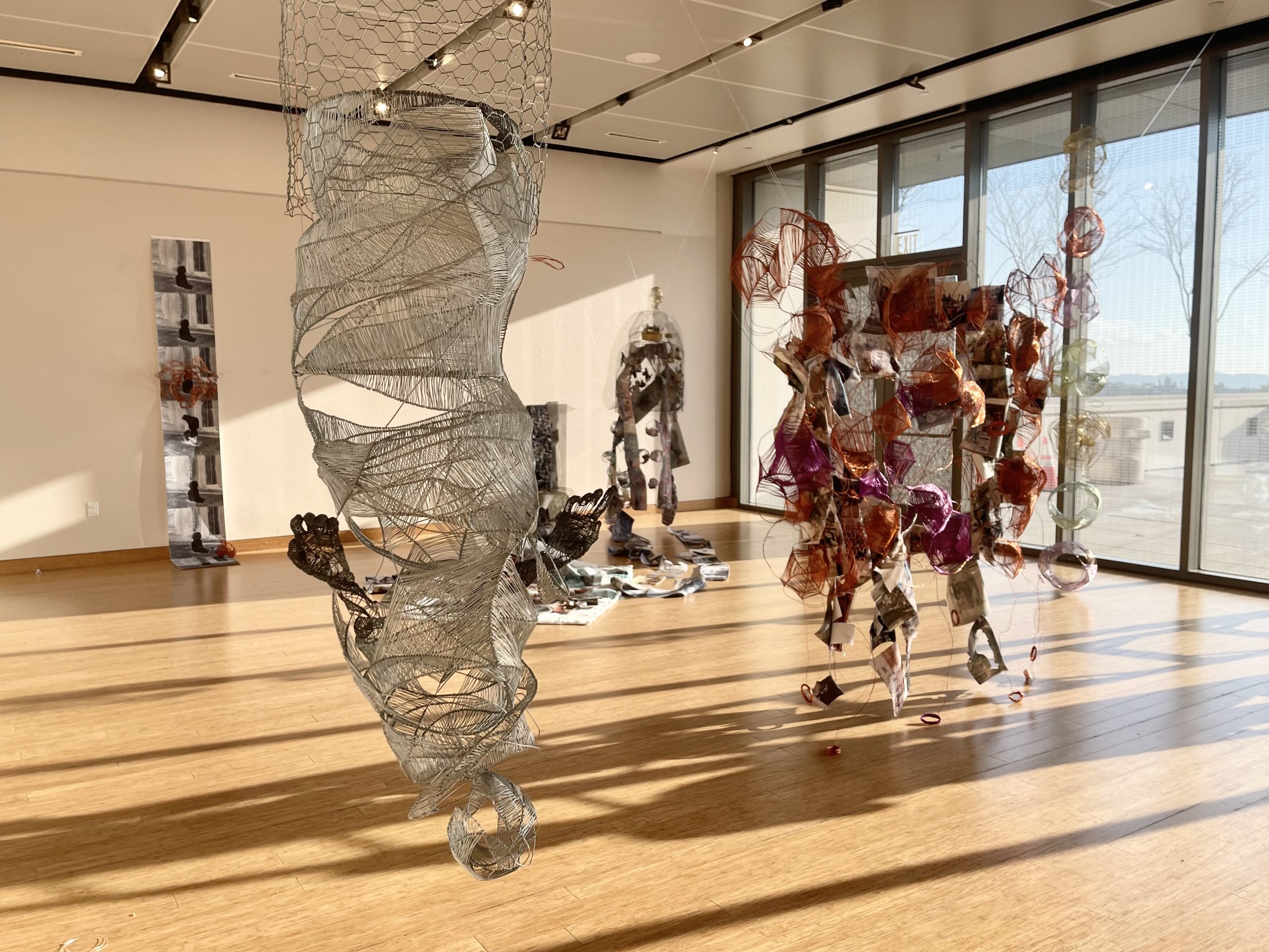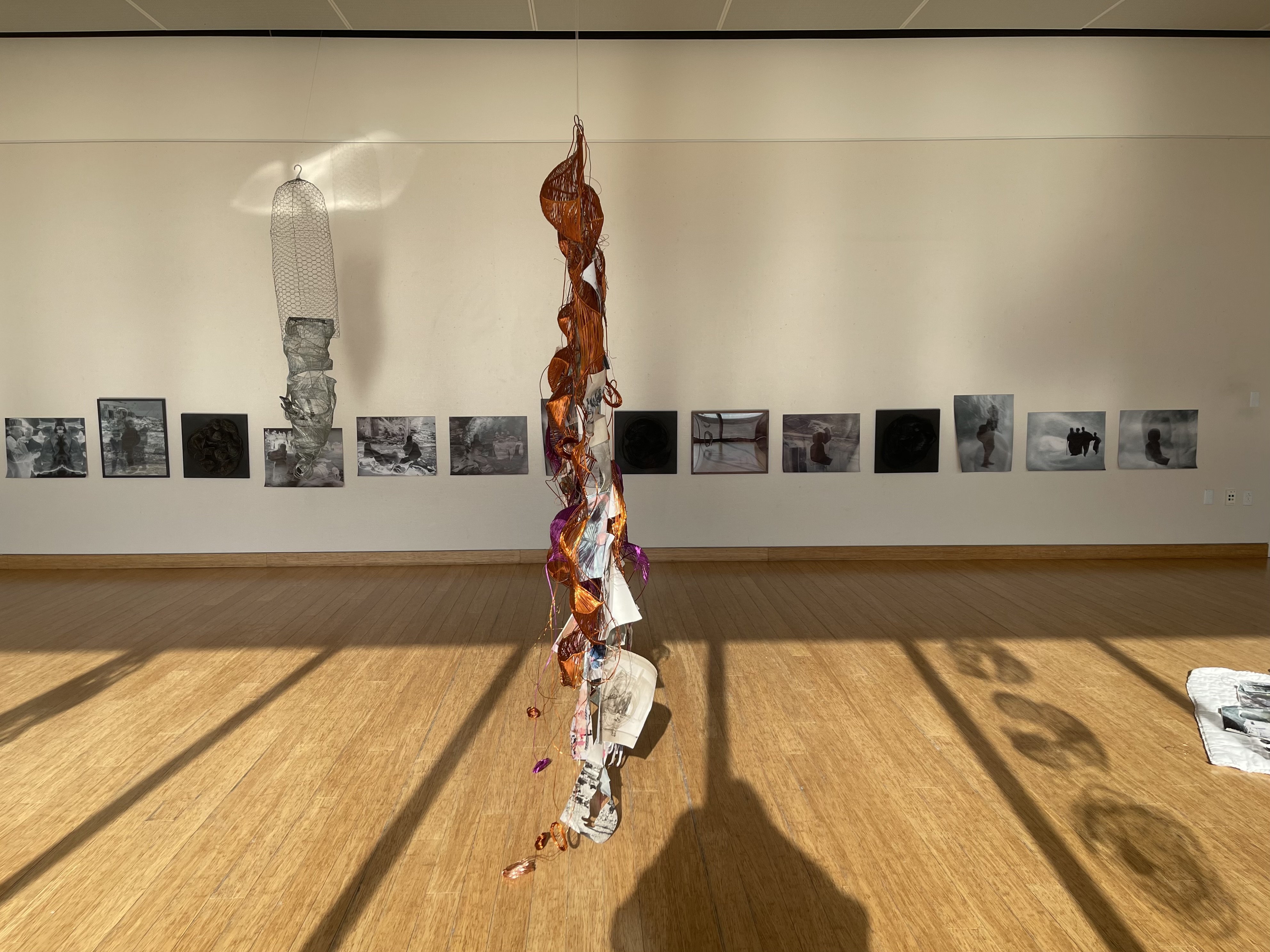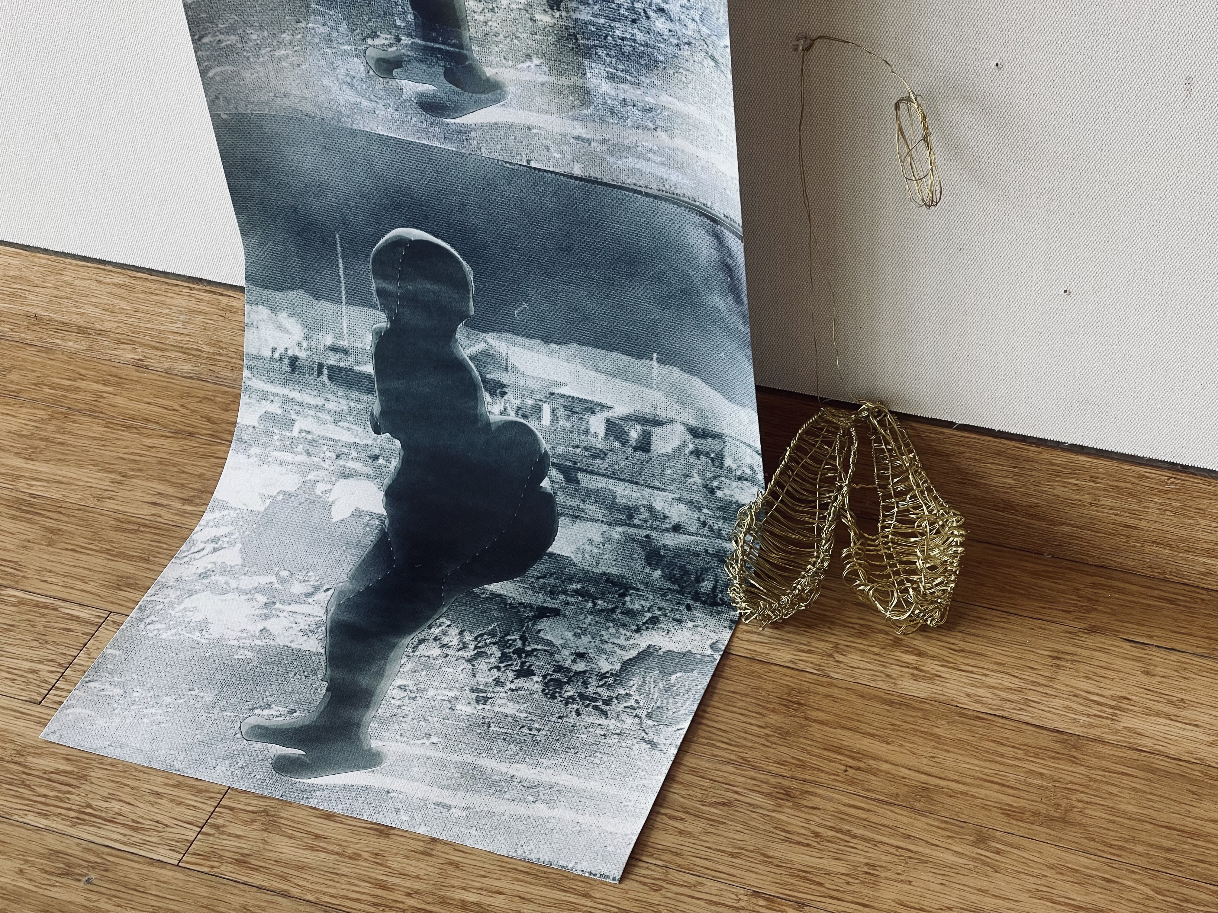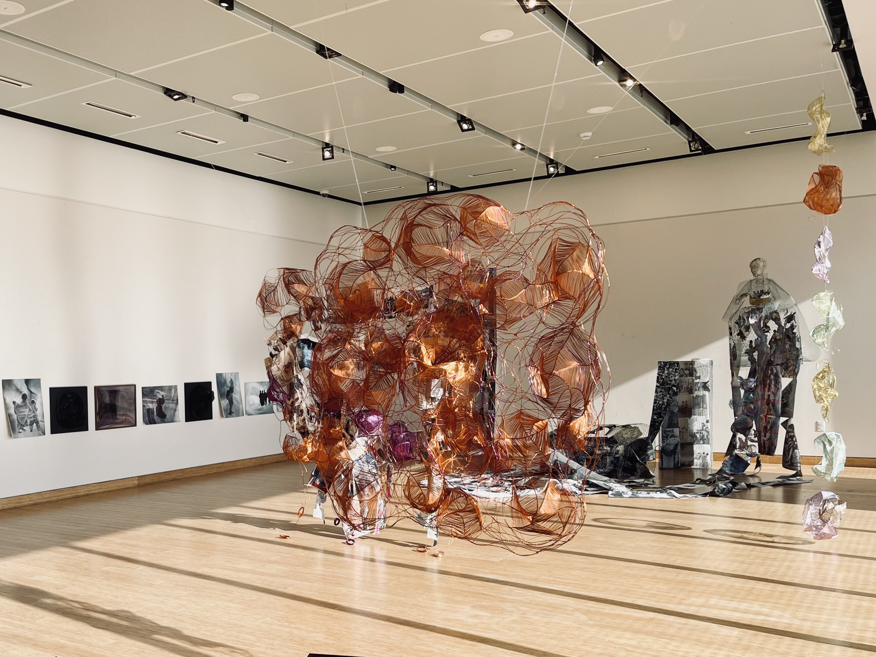 Weaving influences from Handicrafts, Expressionism, and personal and historical narratives accompanied by harmonic glossolalia—speaking in tongues commonly associated with Pentecostal and charismatic Christian traditions—I re-contextualize them with the modernist artistic approaches and narrative deconstructions to contemplate overlooked narratives, while projecting possible identities for the marginalized and providing a commentary on redemptive identity. Using the interior-exterior juxtaposition of my sculptures and collages of imagery intertwined with metal wire as a metaphor of dislocation, nostalgia, assimilation, and desire for belonging, I make my art, situated between chaos and order, emotion and meditation, and isolation and community and weaving together fragments of memory and emotion, I tried to provide a visual language for the universal longing for belonging And contemplating my father’s uprooted trauma from the entire family, I understand his avoidance of modern tools like video chats with me across continents as a bitter reminder of past disconnection. It prompts reflection on ‘genetic trauma’ and the lingering impacts of historical tragedies on individual psyches.